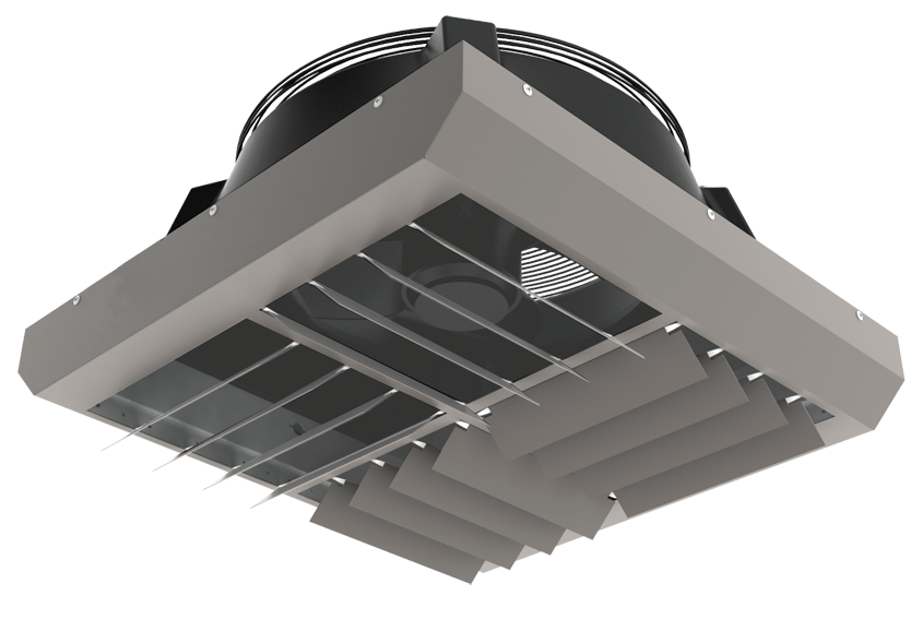Дестратифікатор з вибухозахищеним двигуном PROTON DTR EX призначений для запобігання явищу стратифікації - накопичення теплого повітря у верхній частині приміщення з підвищеними вимогами до вибухобезпеки. За допомогою дестратифікатора тепле повітря примусово направляється в робочу зону, що знижує втрати тепла через перекриття, прискорює обігрів будівлі та забезпечує підтримку необхідної температури. Максимальна дальність струменя повітря до 15 метрів, забезпечується завдяки продуманому конструктиву апарату. Регульовані чотиристоронні жалюзі правильно розподіляють потік повітря, і гарантують коректну дестратифікацію теплого повітря в приміщенні. Легкий корпус дозволяє здійснювати монтаж на висоті без особливих складнощів. Спеціально розроблена консоль полегшує монтаж дестратифікатора.